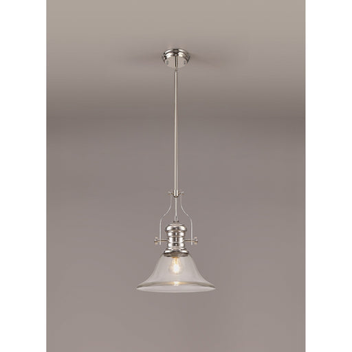 Nelson Lighting NLK01309 Louis 1 Light Telescopic Pendant With 30cm Cone Glass Shade Polished Nickel/Clear