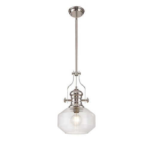 Nelson Lighting NLK15369 Louis 1 Light Round Pendant Polished Nickel Clear