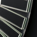 Intricate overlaid mirrored glass edging. Bevelled edge mirror glass. Portrait hanging orientation. D-ring fixing type.