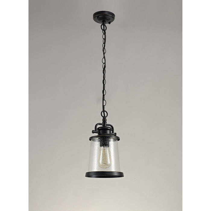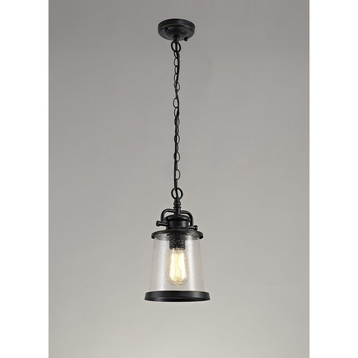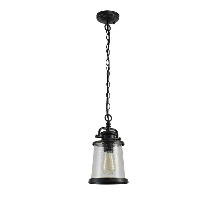 Brad Outdoor Pendant Black/Gold With Seeded Clear Glass