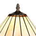 Umbrian uses a traditional Tiffany shade but with a modern twist. The fanned feather shapes forming the umbrella glass is mostly cream coloured with the curved tips of each point available in either green, brown, red, blue or grey. The modern component takes the form of small clear crystal pieces fixed on alternating points of the shades rim furthering the ranges regal appeal. The range of colours gives this products such a large range of settings with the table lamps, floor lamps, pendants and semi ceiling pendants