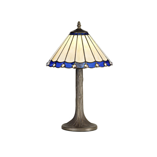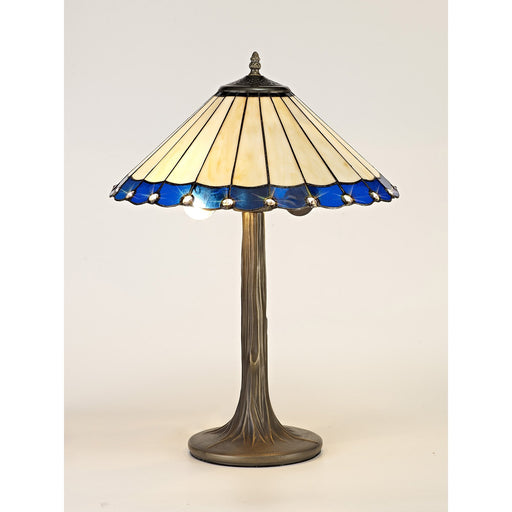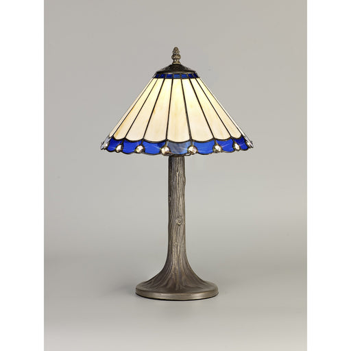 Nelson Lighting NLK03059 Umbrian 1 Light Tree Like Table Lamp With 30cm Tiffany Shade Blue/Chrome/Crystal/Aged Antique Brass