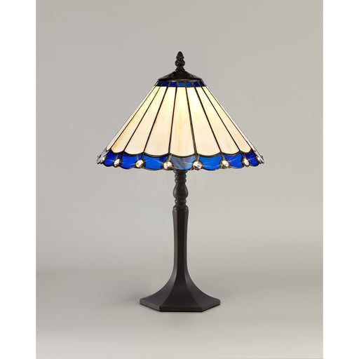 Nelson Lighting NLK03079 Umbrian 1 Light Octagonal Table Lamp With 30cm Tiffany Shade Blue/Chrome/Crystal/Aged Antique Brass