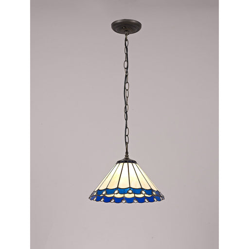 Nelson Lighting NLK03089 Umbrian 1 Light Down Lighter Pendant With 30cm Tiffany Shade Blue/Chrome/Crystal/Aged Antique Brass