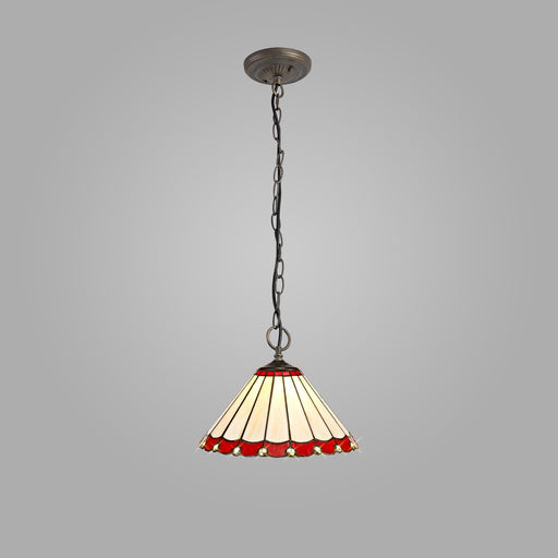 Nelson LightingIn stockUmbrian 2 Light Down Lighter Pendant With 40cm Tiffany Shade Red/Chrome/Crystal/Aged Antique BrassDiameter: 405mmMinimum Drop: 365mmMaximum Drop: 1...