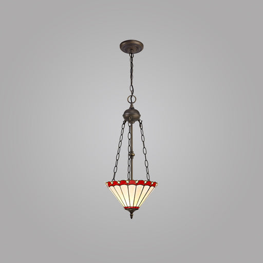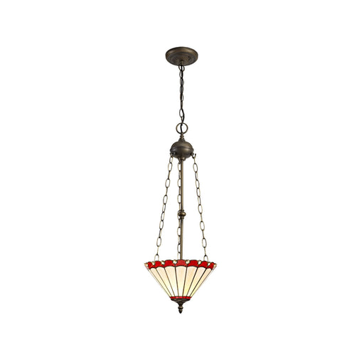 Nelson Lighting NLK02929 Umbrian 3 Light Up Lighter Pendant With 30cm Tiffany Shade Red/Chrome/Crystal/Aged Antique Brass