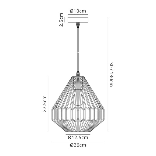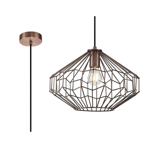 Nelson LightingIn stockValerie Medium Pendant 1 Light Antique CopperDiameter: 360mmMinimum Drop: 255mmMaximum Drop: 1250mmItem Nett Weight: 1.1kgEnergy Class: A++ to DBul...