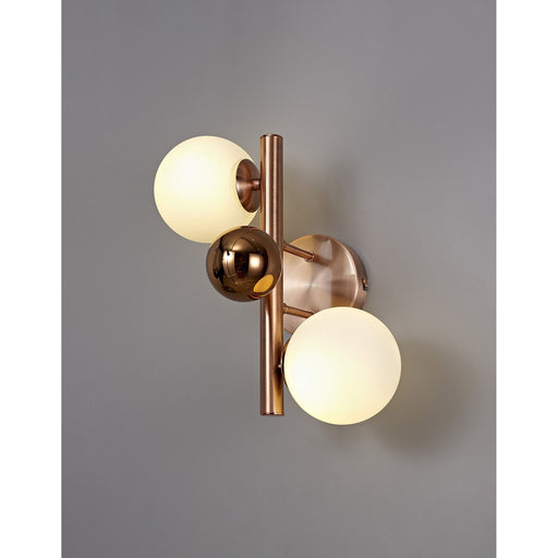 Nelson LightingIn stockRavenna Wall Lamp 2 Light Antique Copper/Opal & Copper GlassWidth: 290mmHeight: 310mmProjection: 220mmItem Nett Weight: 0.88kgEnergy Class: A++...