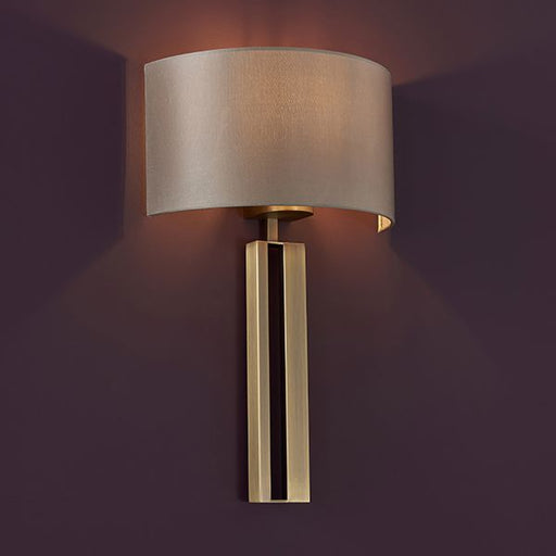 Endon 95452 1 Light Wall Light Matt Antique Brass Plate & Mink Satin Fabric Shade