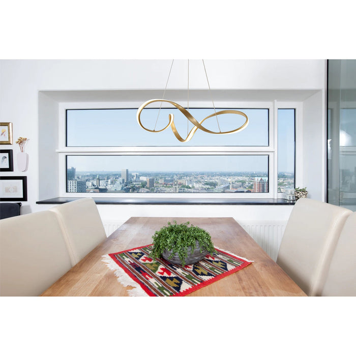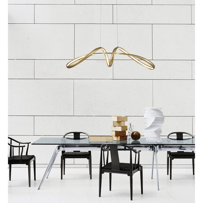 The rhythmic twists and curls of the Brandon form deliver a seamless flow of light. Despite the spiralled directionality of the integral LEDs the pendants as a whole emit an ambient glow of 3000K illumination. In order to offer a wider variety of LED options, Brandon boasts a sand gold colour finish making this pendant range a rare must have entity within a market where modern LED lighting paired with traditional colours are scarce.