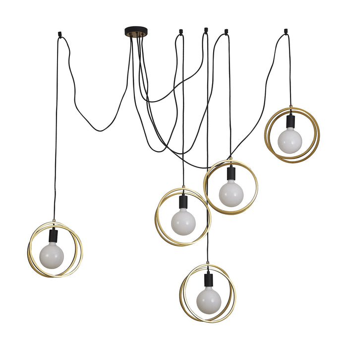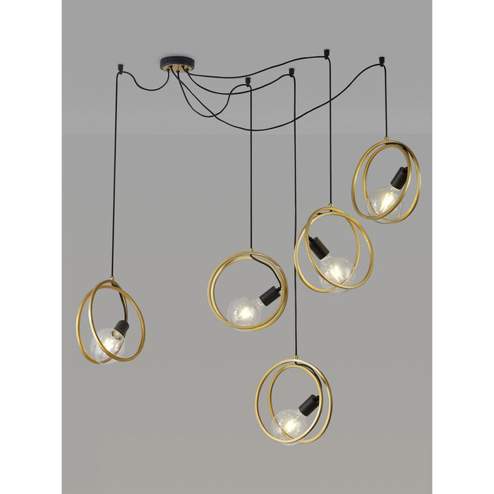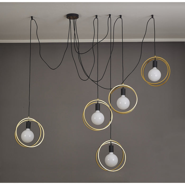 NL86739 Candio 5 Light Double Ring Multi Pendant Matt Black Painted Gold