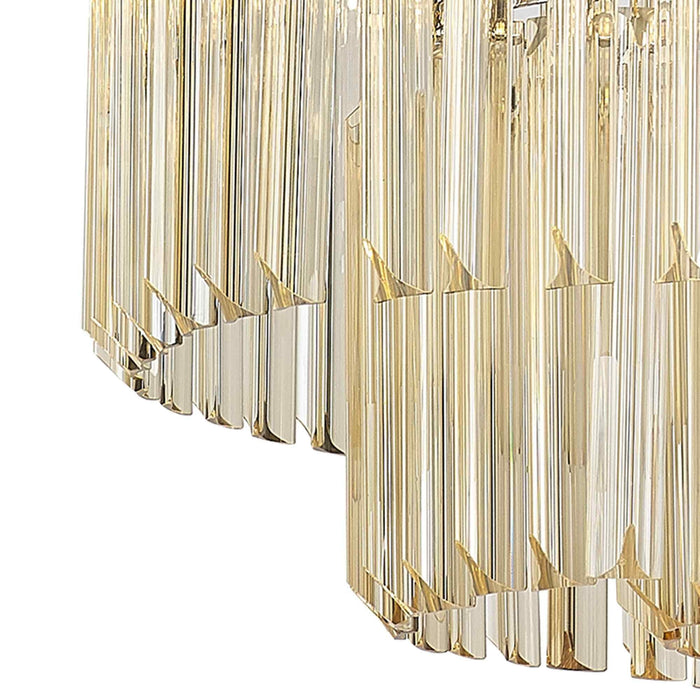 The popularity of the Kobra collections initial release has been so overwhelming that the collection has now been extensively expanded to meet a wider range of specification needs. This contemporary design which originally combined a traditional brass finish with clear sculptured glass pieces, now offers a polished nickel or matt black finish with either clear, cognac or smoked glass. The long angular shape of the glass which are in a tiered form, can now be found on larger more dramatic designs including a five tier and rectangular pendant to name only a few. Kobra has a traditional regal effect composed with modern materials to create a range suitable for either a modern or more traditional room setting. The unique pyramid forms protruding from the frame provide an intriguing overall shape across this comprehensive collection.