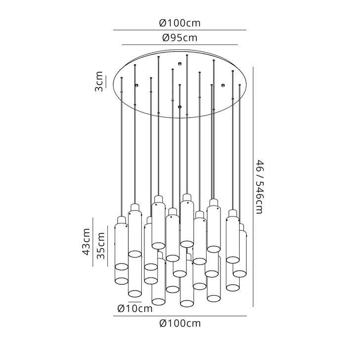 NL91699 Blade Slim 21 Light Round Pendant Mocha Polished Chrome