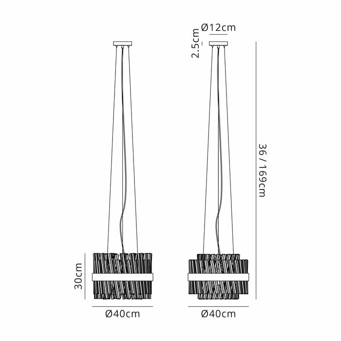 Kaffer offers a wide variety of frame and glass colour combinations. Of the three frame colours; satin black, polished nickel and brass, there are an equal number of glass to choose from; clear, smoked or amber. One of the most unique selling points of this collection is the dual application of how the mixture of long and short glass are fitted to the lights, giving two visual options. Every frame from the pendants to floor lamps can situate the glass either all vertically for a clean cylindrical outline or at a diagonal angle creating a more uneven decorative effect.