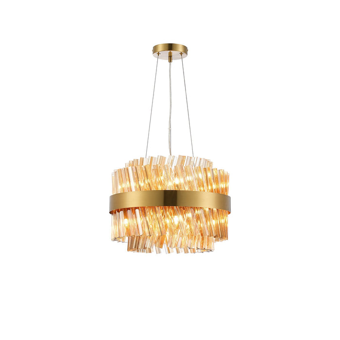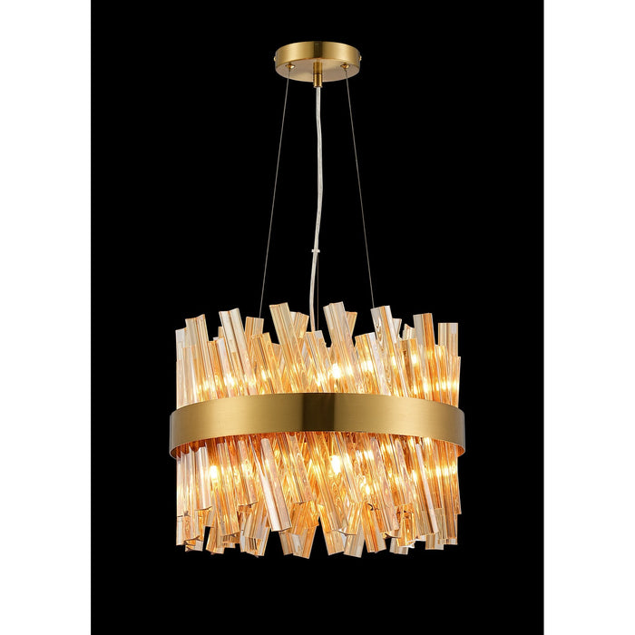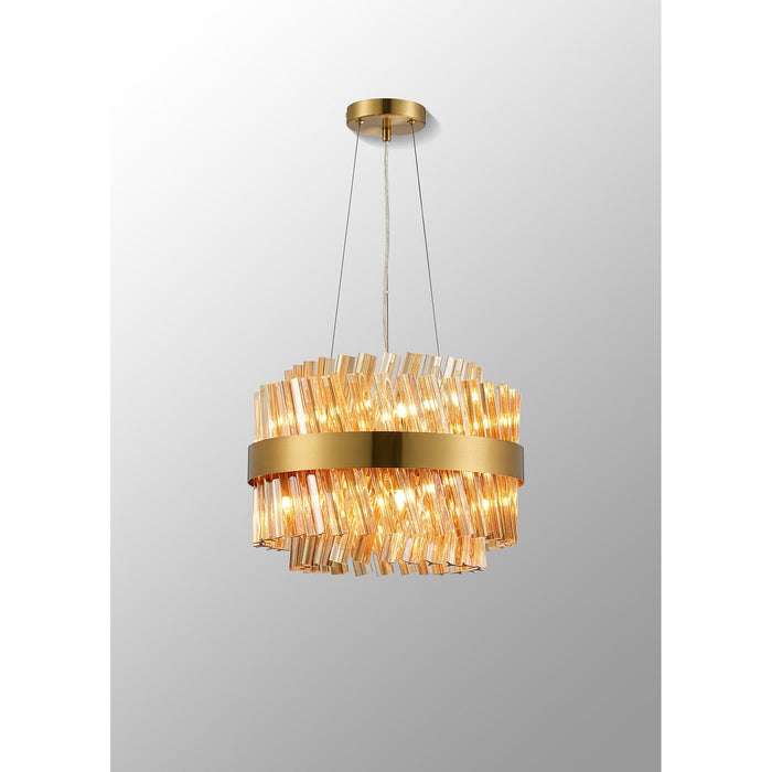 NL9498BR/AM9 Kaffer 10 Light Round Pendant Brass Amber