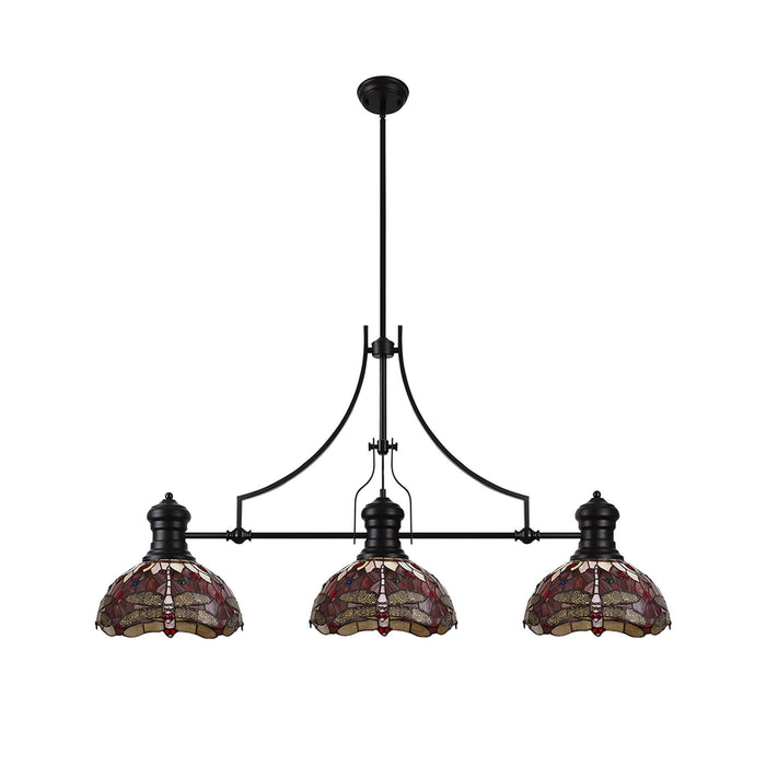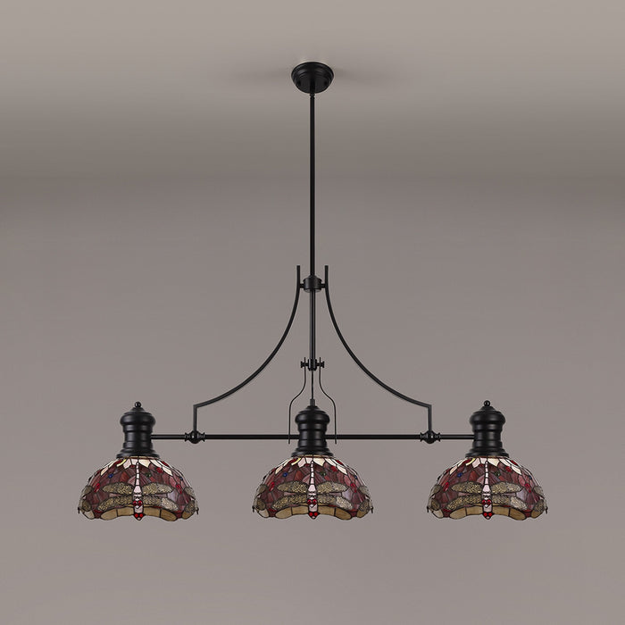 Nelson Lighting NLK15229 Louis, Heidi 3 Light Linear Pendant Matt Black Purple/Pink