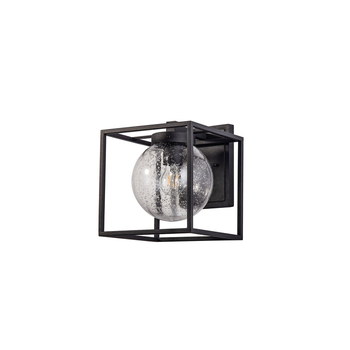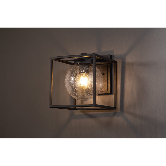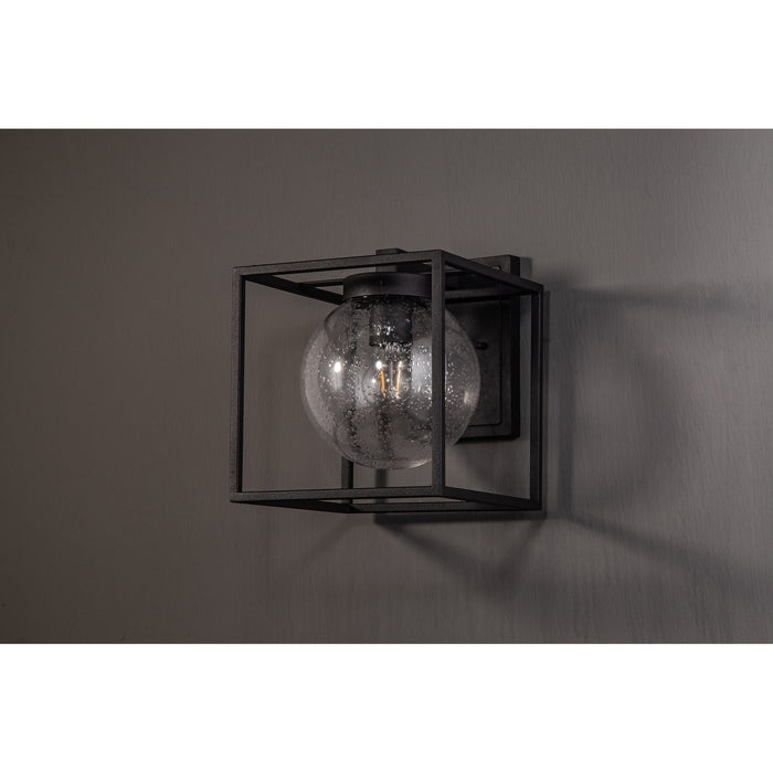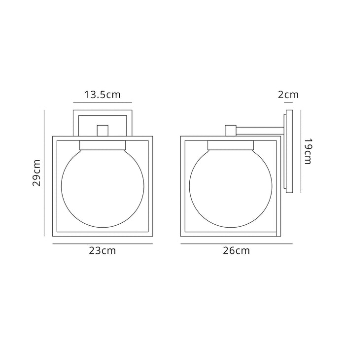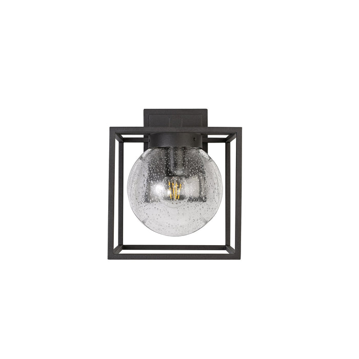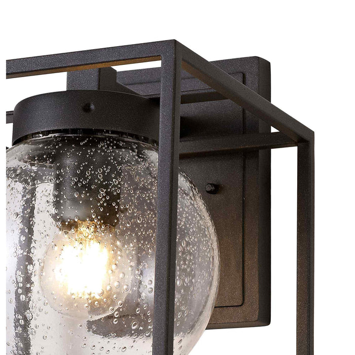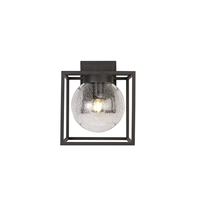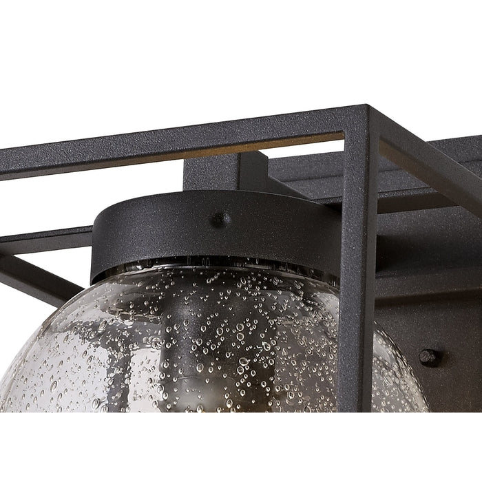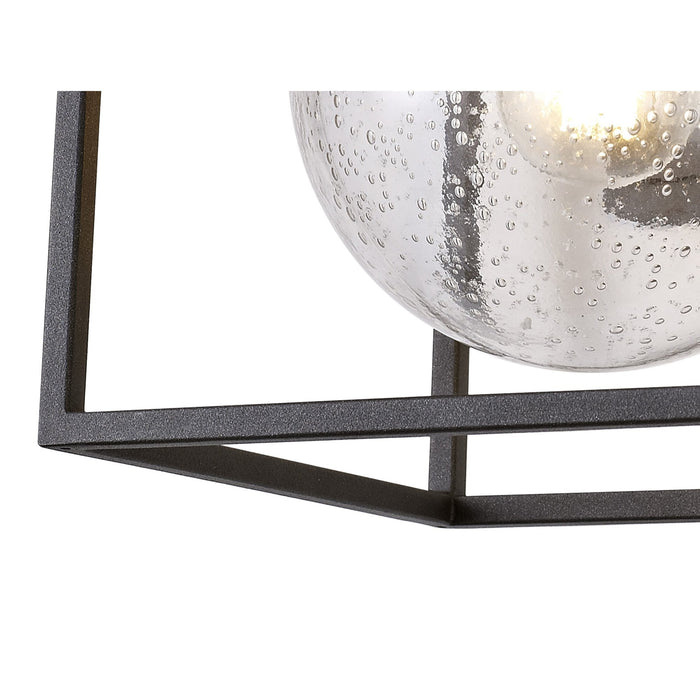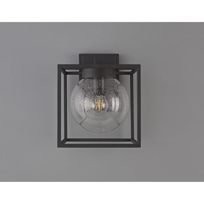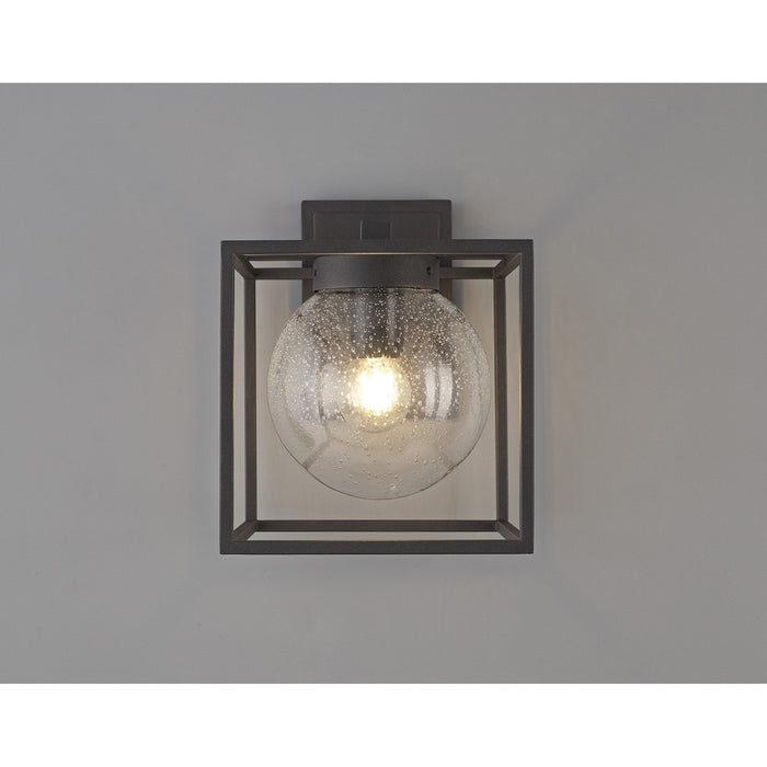 The Ammer outdoor wall lamp uses a uniform cube frame with open faces to offer a clear view of the unique glass globe. The clear seeded glass acts a protective seal around the E27 lamp holder giving the fixture an IP54 rating whilst also providing a stylish feature appropriate for outdoor lighting. The dark anthracite colour finish offers extra durability against all types of weather.