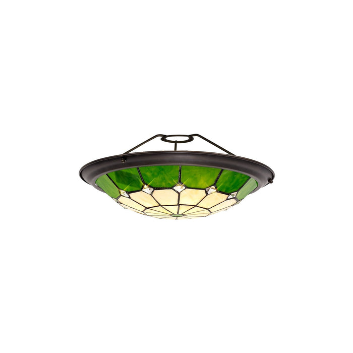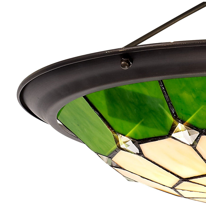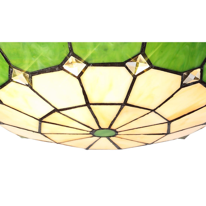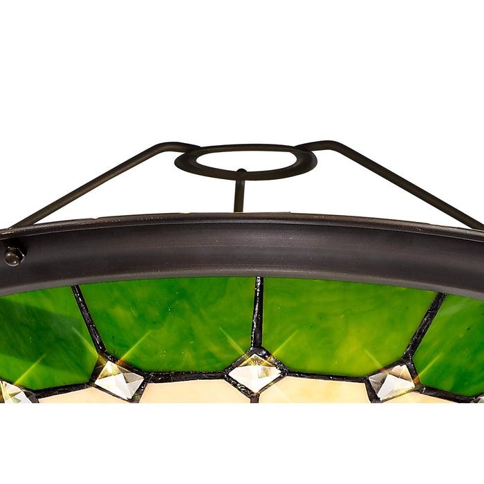 NL72379 Archie Tiffany Non-electric Uplighter Shade Cream/Green/Clear Crystal Centre/Aged Antique Brass Trim