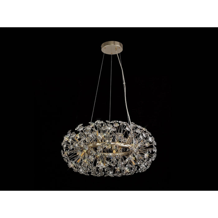 This beautiful comprehensive collection available in either a polished chrome or french gold colour finish, uses slim stems angled erratically to form an enchanting cluster of clear crystal disks. The lines of the central framework of round, tiered and oblong Linear pendants, act as a base from which the crystals can sit around the G9 lamp holders ensuring the light emitted from the chosen lamp refracts through each facette throwing sublime spectrums. An even more extensive range of products are now available within the massively popular Bulge range including wall, table and floor lamps, ceiling lights and spectacular spherical pendants with diameters as large as 1.5 metres.