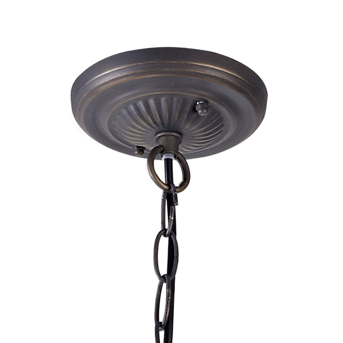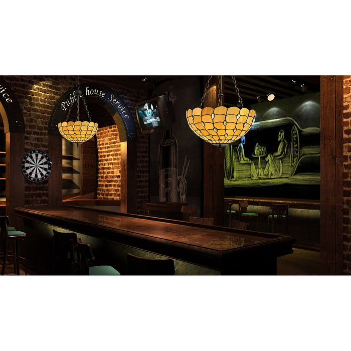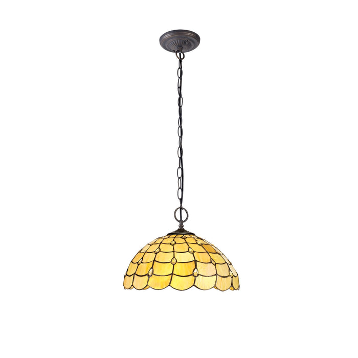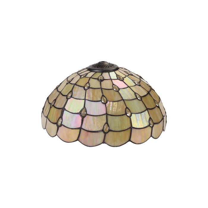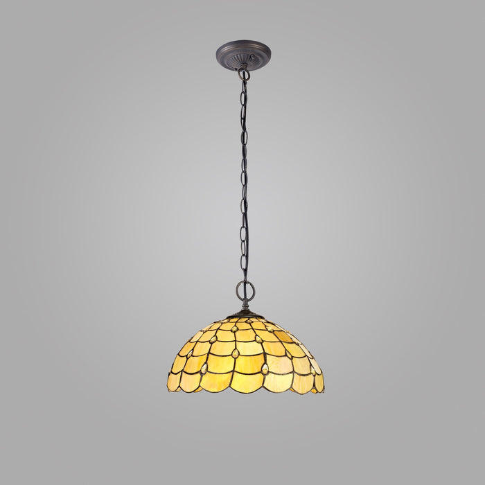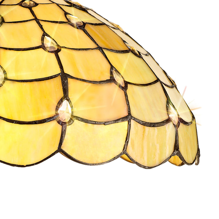 Chrisy 2 Light Down Lighter Pendant With 40cm Tiffany Shade Beige/Clear Crystal/Aged Antique Brass