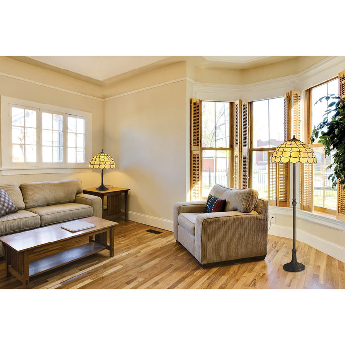 The Chrisy Tiffany collection is a harmonious balance of old and new, forming a unique contemporary range that combines vintage design with modern elements. The domed shades, assembled from beige sheened glass shapes and black outlines are adorned with multiple clear crystal tear drops. This not only ensures a muted homely ambience of light but also dazzling points of sparkle. Chrisy can be used to create classic character in a room setting with ceiling lights and table lamps.