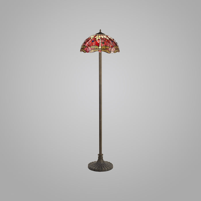 Heidi 2 Light Stepped Design Floor Lamp With 40cm Tiffany Shade Purple/Pink/Crystal/Aged Antique Brass