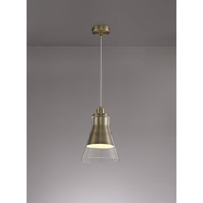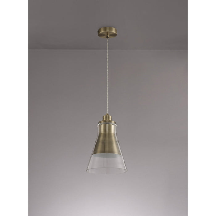 Hoister Pendant 1 Light Antique Brass/Clear Glass