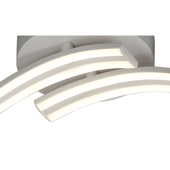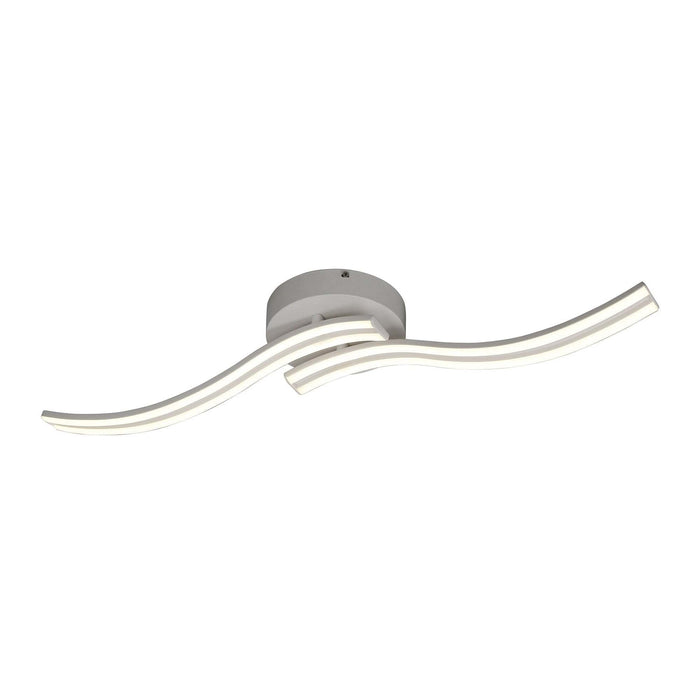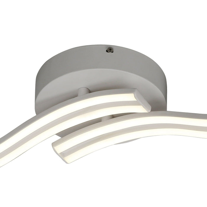 The two light ceiling fixture and wall lamp offer a streamlined linear option whereas the three and five light overlap the arms to form a more circular pattern. A visually intriguing collection, Josh's ceiling fixtures host slim, narrow strips of diffused 4000K light. A line of white frame running along the middle of each piece creates an aesthetic impact furthering the waved design aspect.