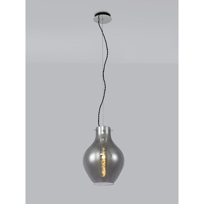 NL84159 Zen Pendant 28cm Round Chrome & Smoke