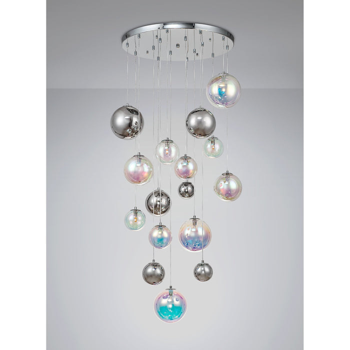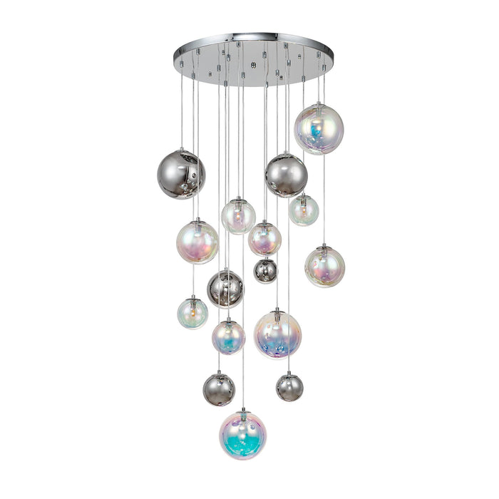 NL84289 Regent Pendant 16 Light Polished Chrome/Iridescent Glass