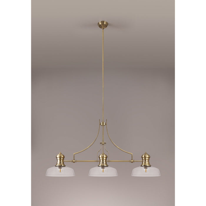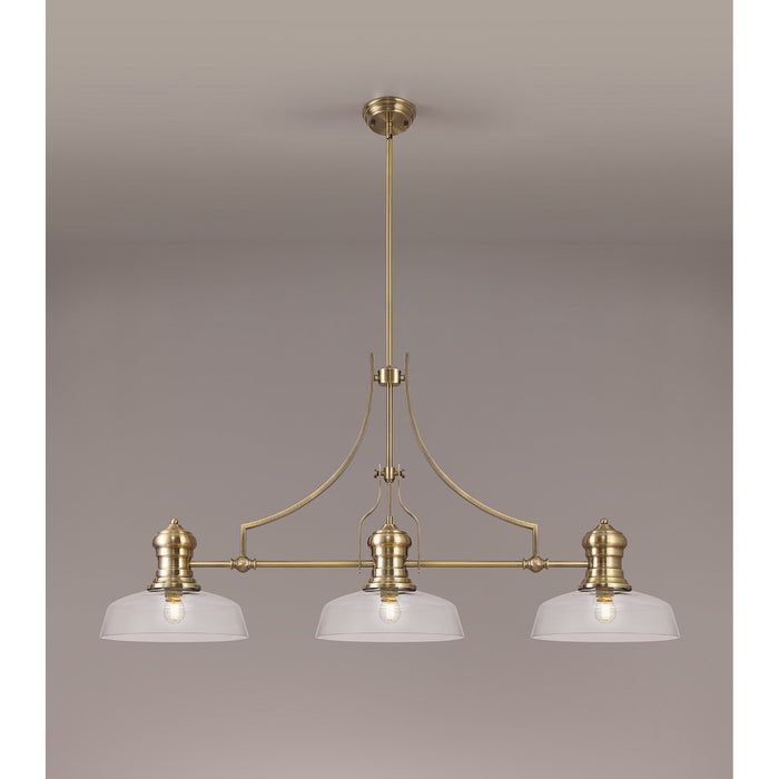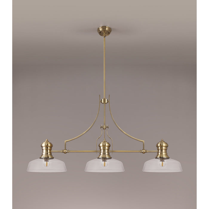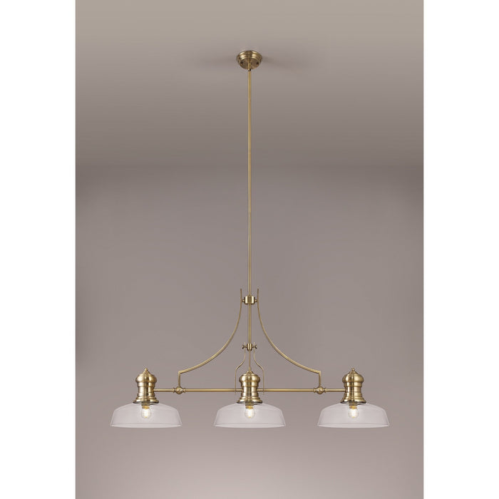 Louis 3 Light Telescopic Pendant With 30cm Flat Round Glass Shade Antique Brass/Clear