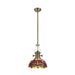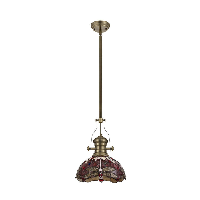 NLK04579 Louis/Heidi 1 Light Telescopic Pendant With 30cm Tiffany Shade Antique Brass/Purple/Pink/Crystal