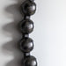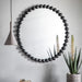 Aged black finish large beading design metal frame. Mirror size 700mm dia. Portrait hanging orientation. Keyhole fixing type.