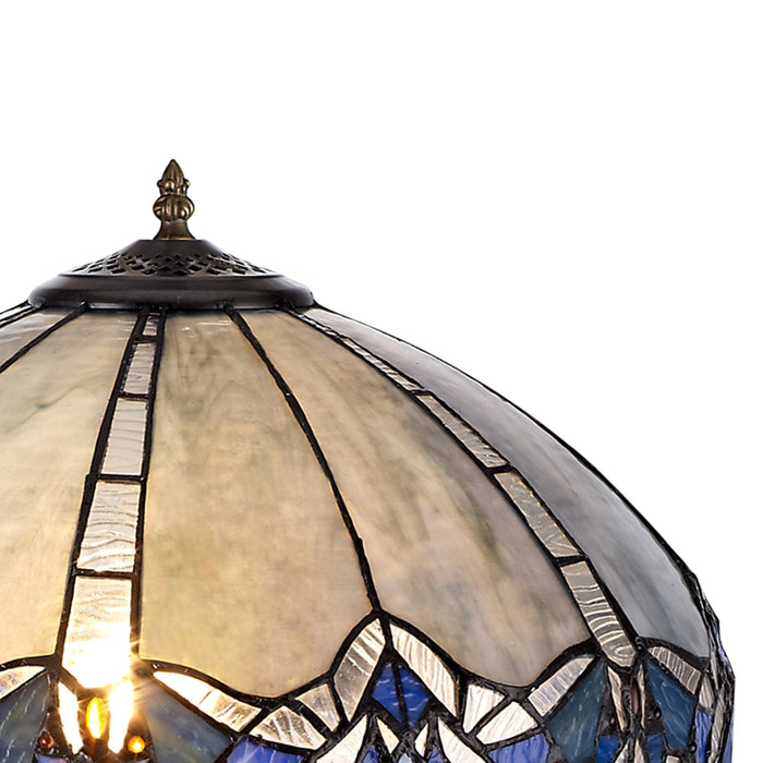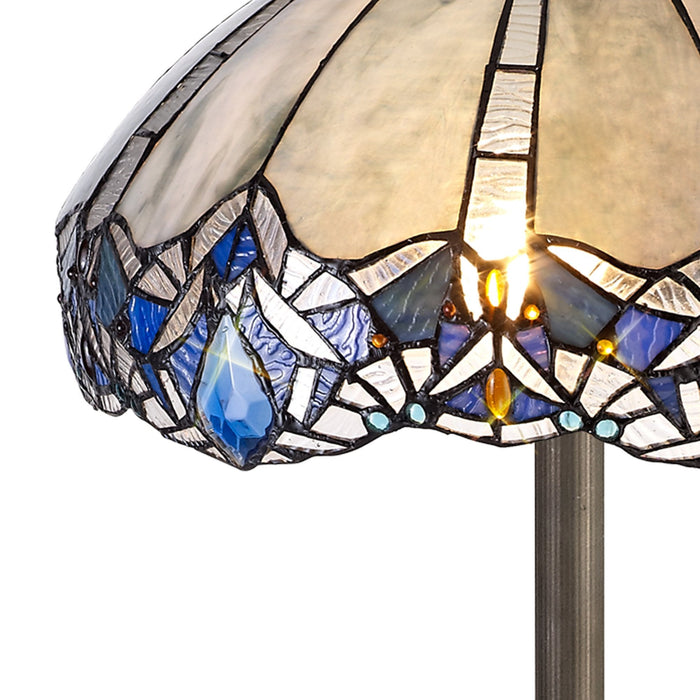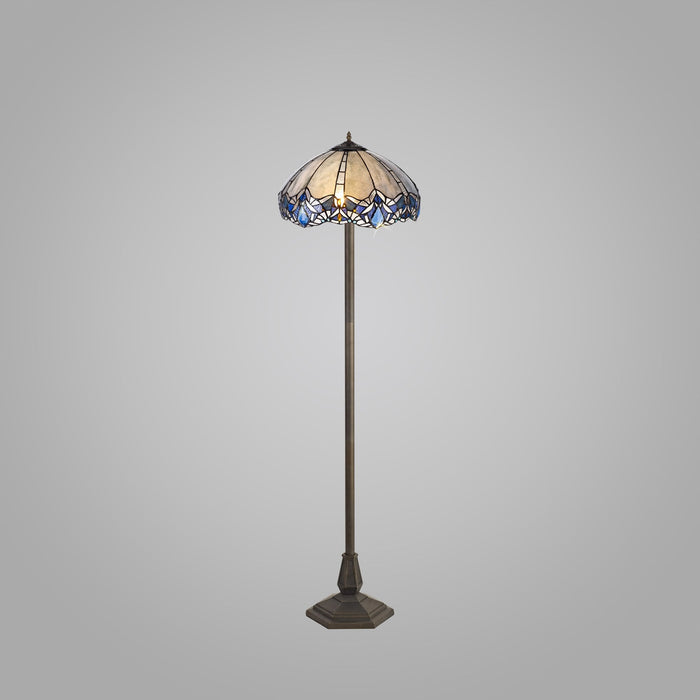 Ossie 2 Light Octagonal Floor Lamp With 40cm Tiffany Shade Blue/Clear Crystal/Aged Antique Brass