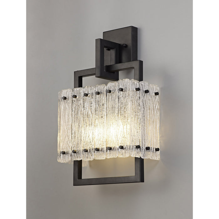 Sorrel Wall Lamp 2 Light Matt Black/Crystal Sand Glass