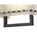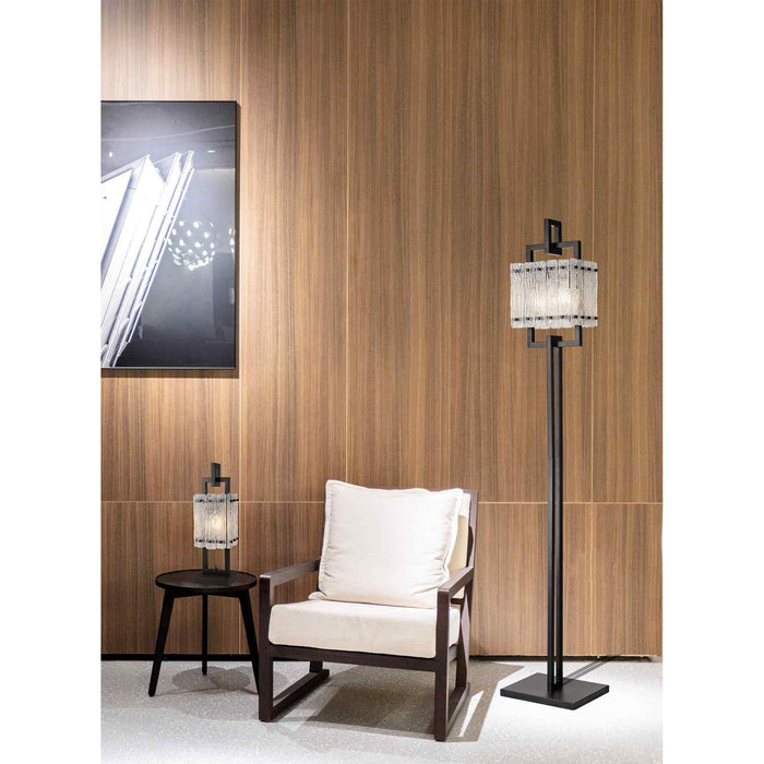 Sorrel is another ingeniously invented decorative concept across a comprehensive range of pendants with matching wall, table and floor lamp. Rectangular pieces of glass with a crystallised frosted pattern are held onto the frames with black caps to match the colour of the frame. The fixings are positioned at either end of the glass so the theme appears as a reimagined xylophone. These unique features add a dramatic statement to their given setting.
