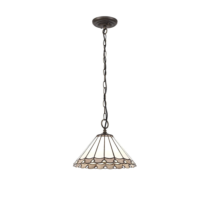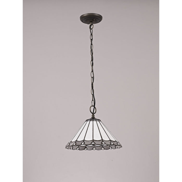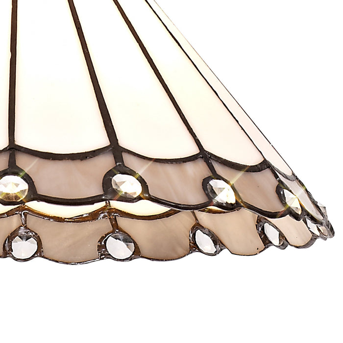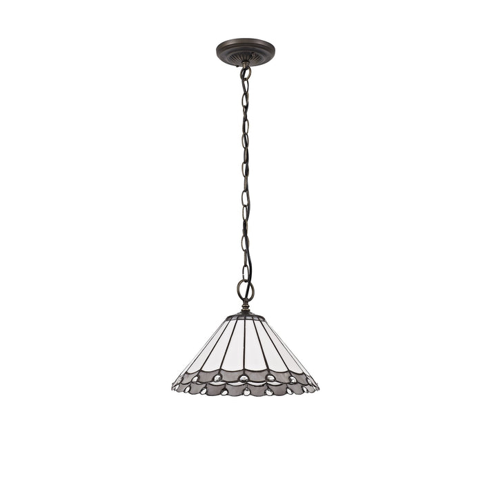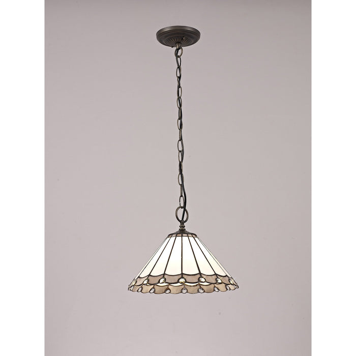 Umbrian 1 Light Down Lighter Pendant With 30cm Tiffany Shade Grey/Chrome/Crystal/Aged Antique Brass