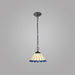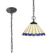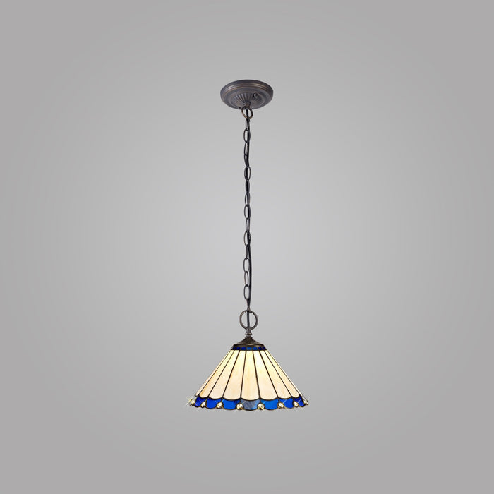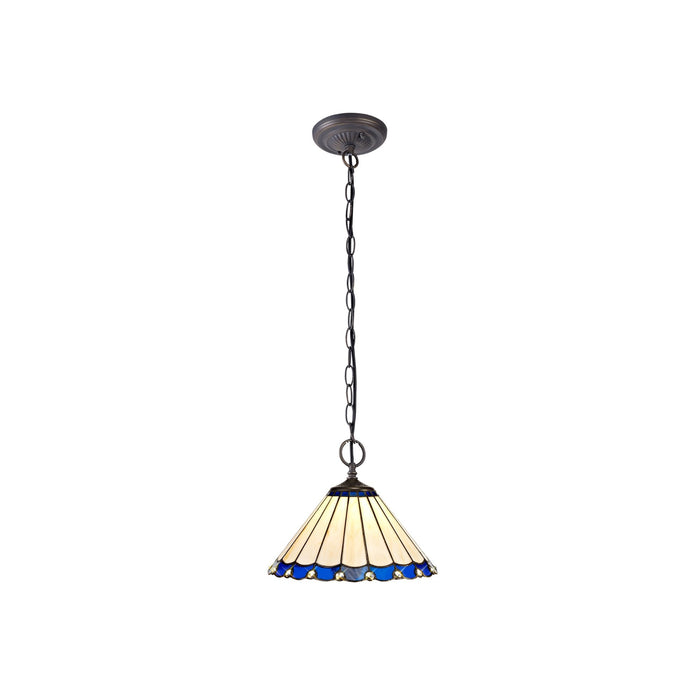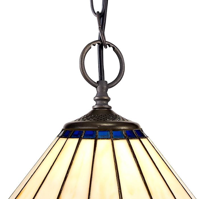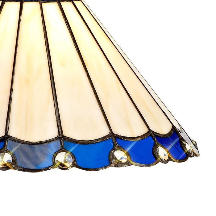 Umbrian 2 Light Down Lighter Pendant With 30cm Tiffany Shade Blue/Chrome/Crystal/Aged Antique Brass