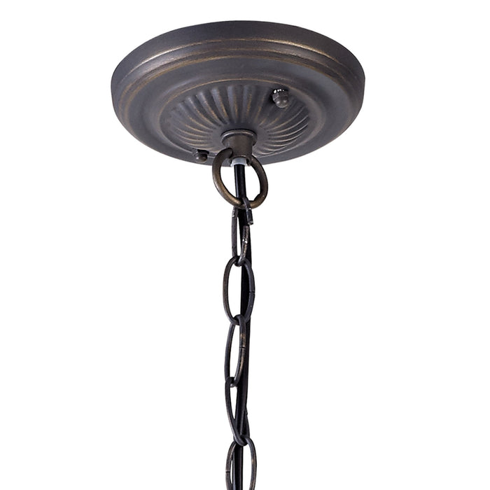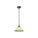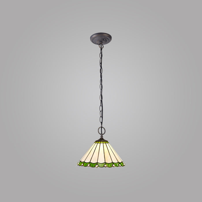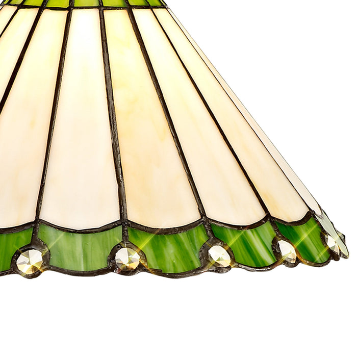 Umbrian 2 Light Down Lighter Pendant With 30cm Tiffany Shade Green/Chrome/Crystal/Aged Antique Brass