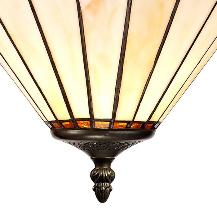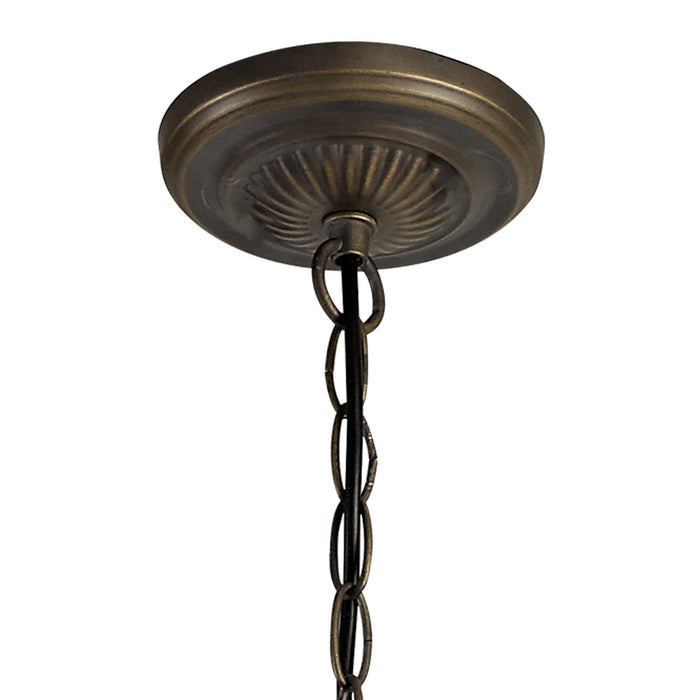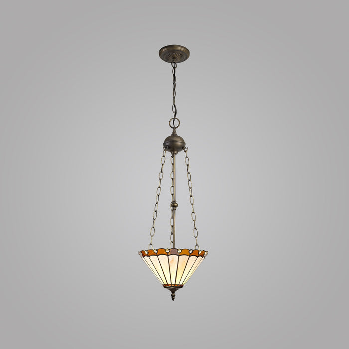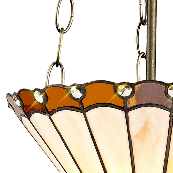 Umbrian 3 Light Up Lighter Pendant With 30cm Tiffany Shade Amber/Chrome/Crystal/Aged Antique Brass