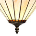 Umbrian uses a traditional Tiffany shade but with a modern twist. The fanned feather shapes forming the umbrella glass is mostly cream coloured with the curved tips of each point available in either green, brown, red, blue or grey. The modern component takes the form of small clear crystal pieces fixed on alternating points of the shades rim furthering the ranges regal appeal. The range of colours gives this products such a large range of settings with the table lamps, floor lamps, pendants and semi ceiling pendants