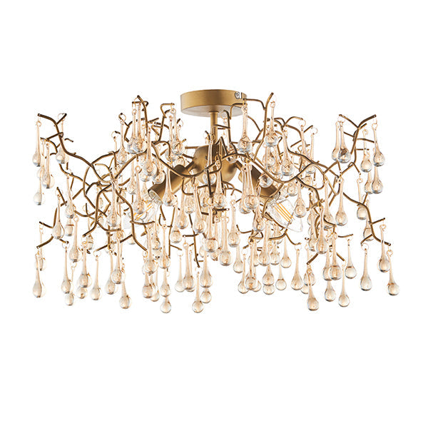 Champagne lustre glass teardrops. Dimmable. Ideal for low ceilings. Perfect for use with E14 LED filament lamps