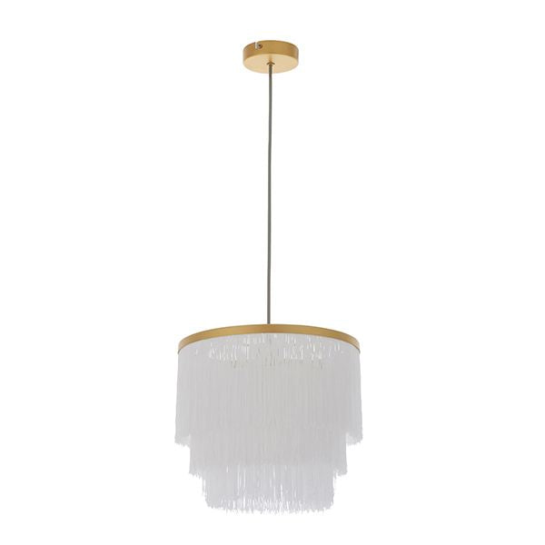 91551 1 Light Pendant Matt Gold Paint & White Tassels